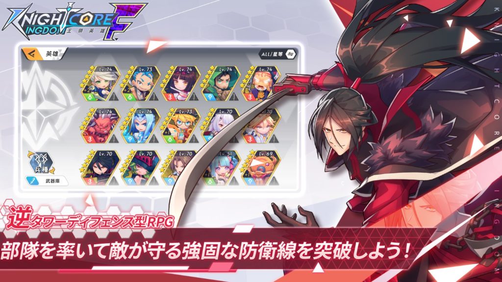 『ナイトコアキングダムF』の最大の特徴は、一般的な“タワーディフェンス”とは真逆の発想から生まれた「タワーオフェンス」システムにあります。プレイヤーは、次々に配置された敵の拠点を突破していく攻撃側の司令官として、キャラを編成し、戦場に送り込みます。