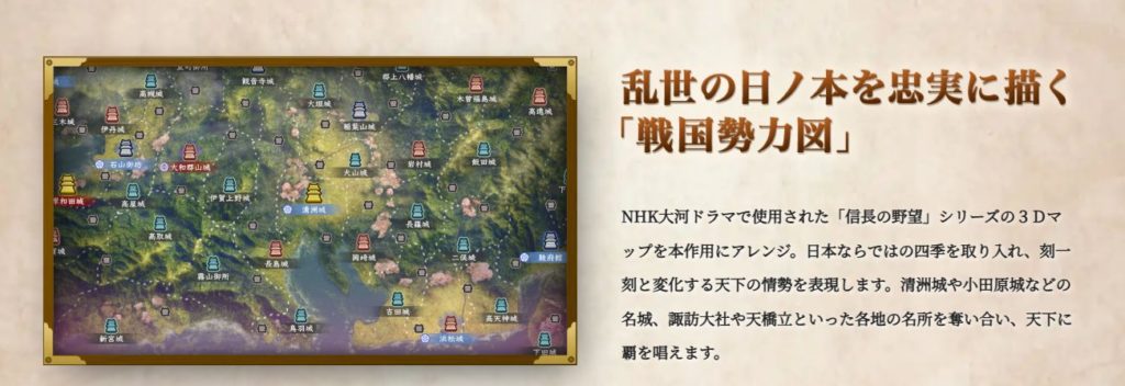 プレイヤーは複数の“大名勢力”から一つを選び、自国の発展や他勢力との外交交渉を進めることができます。これにより、「どの勢力でどのように天下統一を目指すか」という無数のルートが存在し、1回のプレイで終わることがありません。
